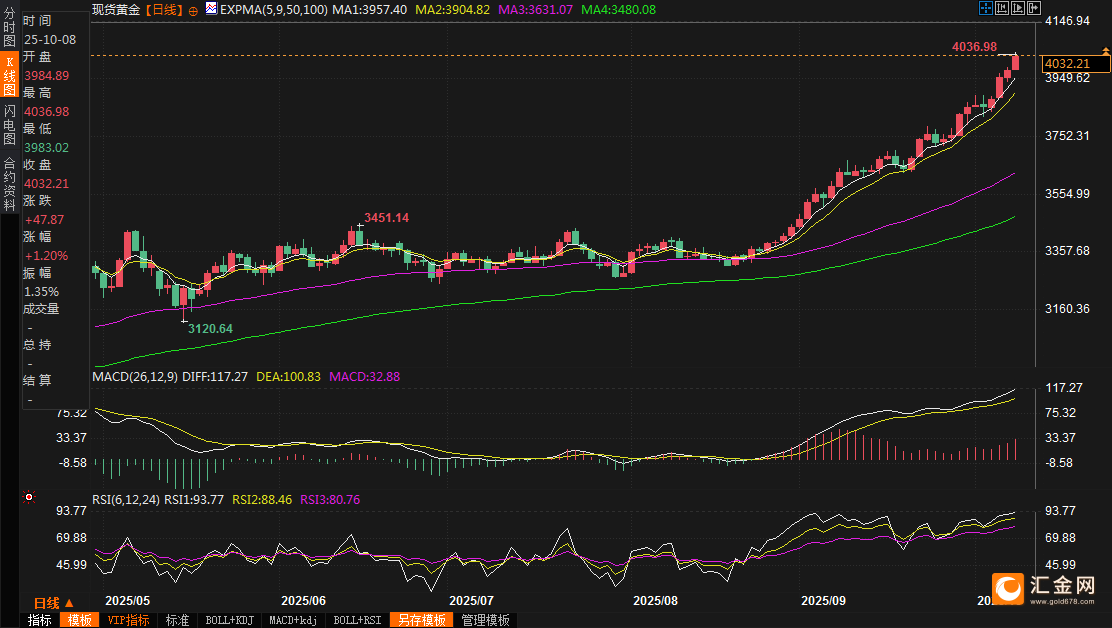 金价作为经典避险资产,对地缘政治和经济不确定性的敏感度极高。此次芝加哥事件本质上是美国国内“内战式”对峙,类似于2020年选举乱局和2021年国会山事件的重演。它强化了投资者对美国稳定的担忧:联邦 vs. 地方的权力冲突,可能演变为更广泛的社会动荡,甚至影响2026年中期选举格局。这种“本土风险”信号,会促使资金从高风险资产(如股市)流向黄金,给金价提供上涨动能,兼受美国政府关门、美联储降息预期和地缘局势担忧等因素影响,现货黄金周三顶破4000正式关口,截止13:42,一度刷新历史高点至4036.98美元/盎司。