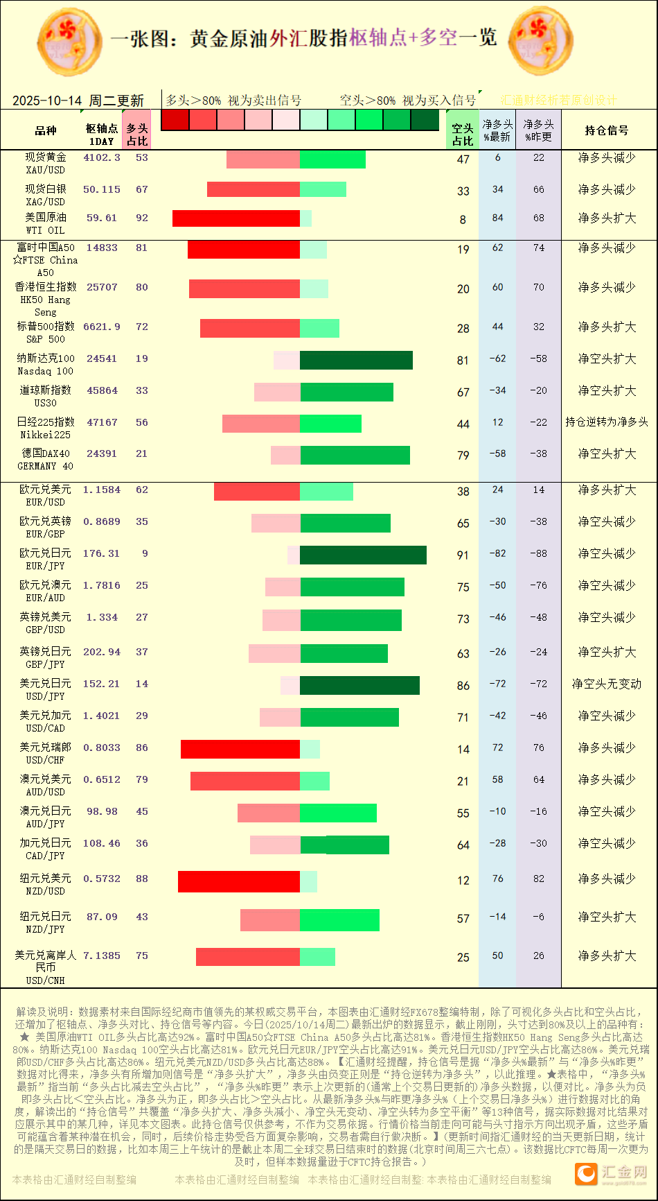 一张图看商品支撑阻力:金银油气+铂钯铜+农产品期货,更新于2025年10月14日周二12:45,具体覆盖金银铂钯铜+原油天然气燃油+小麦玉米棉花14个品种,更多详见汇通财经析若特制图表中的内容。