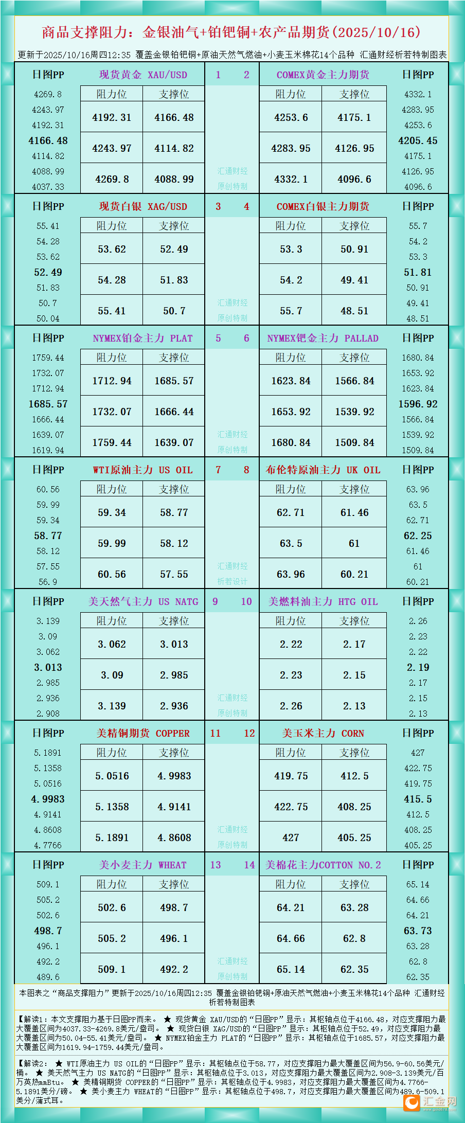 【图:黄金原油外汇股指枢轴点及多空持仓信号解读,来源:汇通财经特制图表。(点击图片放大看大图)】