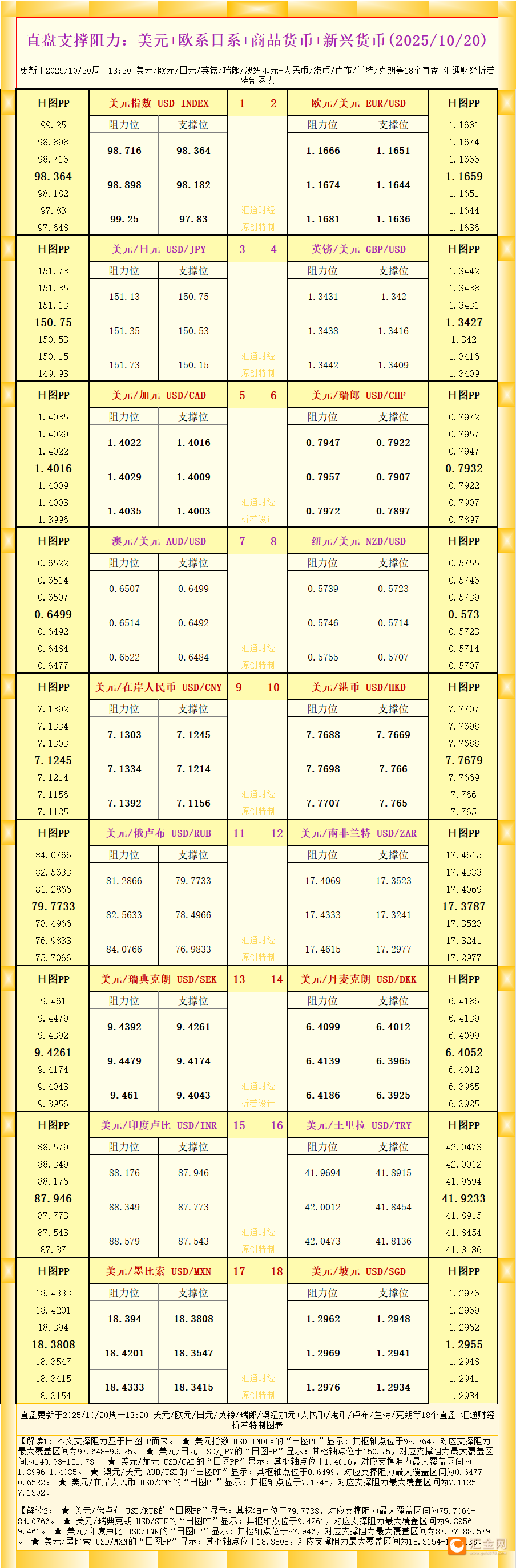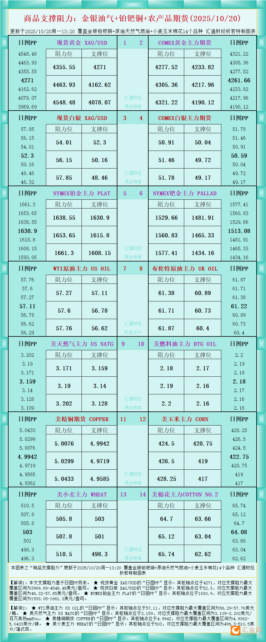 【图:黄金原油外汇股指枢轴点及多空持仓信号解读,来源:汇通财经特制图表。(点击图片放大看大图)】