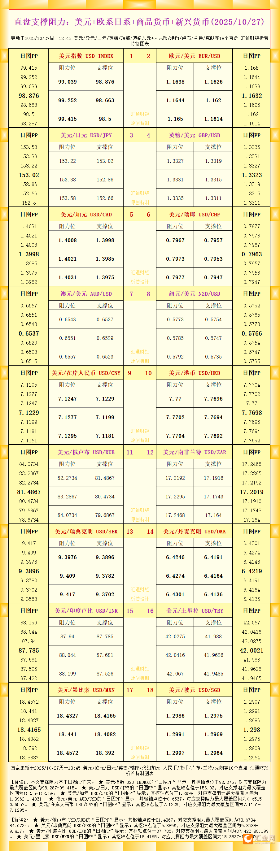 【图:黄金原油外汇股指枢轴点及多空持仓信号解读,来源:汇通财经特制图表。(点击图片放大看大图)】