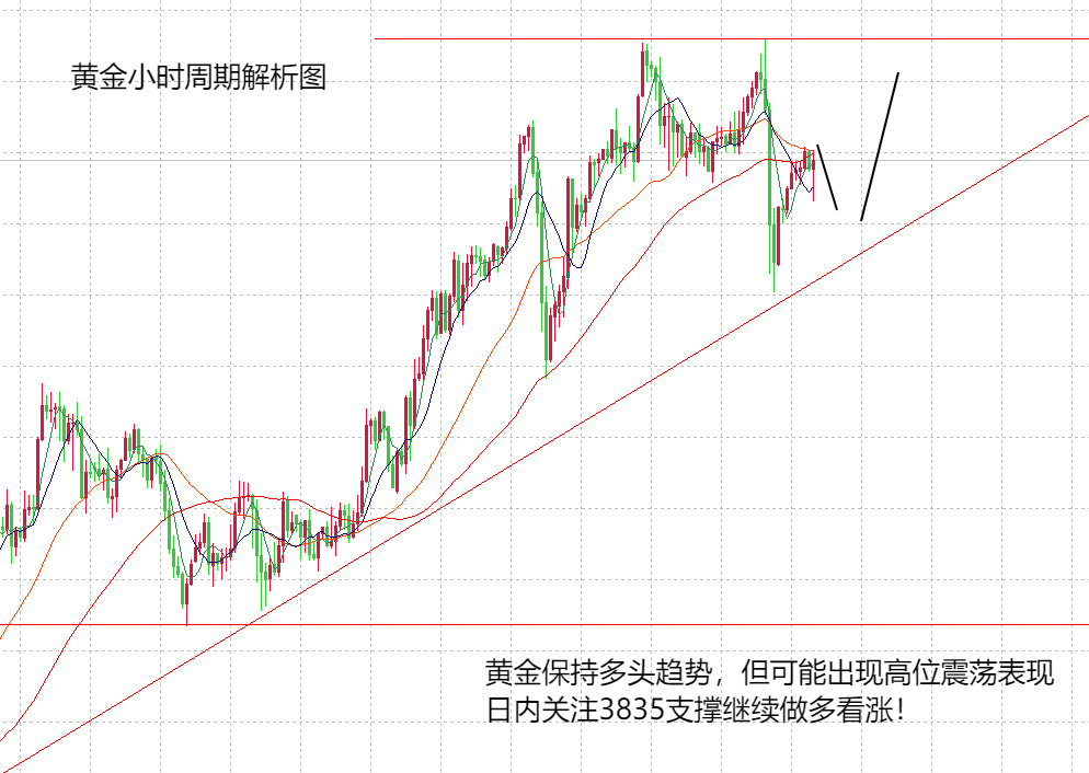 先说结论,黄金继续保持多头趋势看涨,交易依旧是回落做多,不追多。本周行情到目前为止,周一,周二走出单边上涨,周三,周四走出调整后的上涨,特别是周三,周四的交易非常有意思,每次都走出80美金的大跌,但每次又走出趋势的上涨,连续两天我们都抓到了趋势大利润,在趋势不变的情况下,山海一直强调,回落就是做多的机会。所以,我们继续保持自己的交易原则不变,回落就是给做多的机会,看涨不猜顶。节奏上也比较符合预期,亚欧盘上涨,美盘下跌,午夜再涨。周四亚欧盘上涨至3895形成双顶,走出预期的回落空间,最低在3819,全盘再次下跌76美金,不过趋势还是趋势,午夜再次走出上涨,收盘在3855之上,那么,可以看到,日线周期k线依旧保持在5,10日均线之上,还是极强的状态,所以,趋势没变,强势也没变。H4周期现在有一个变化,布林收口,黄金有可能在周五是震荡表现,上方继续关注3895高点得失,下方继续关注3820得失,不过,按照趋势表现,激进点的话,可以看一下3835支撑,亚欧盘就看3835支撑继续做多,美盘则看3820是否破位,不破,依旧可以做多。美国政府停摆,今天非农数据无法公布,预计不会对市场没有影响。