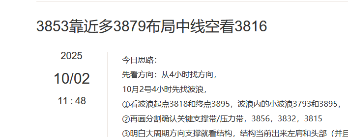 10-02[黄金]3853靠近多3879布局中线空看3816