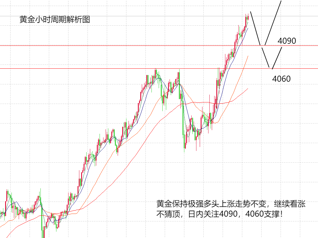 10-14[黄金]10月14日【黄金原油】亚欧盘:黄金延续多头极强单边上行节奏,今日回踩依托4090关口为防守继续顺势主多看破高不变