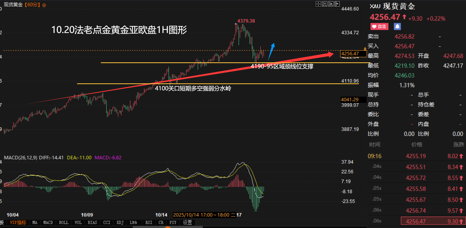 10-20[黄金]10月20日【黄金原油】亚欧盘:黄金日线级别高位中阴不改整体多头强势格局,今日回踩依托4190关口继续主多顺势看涨不变
