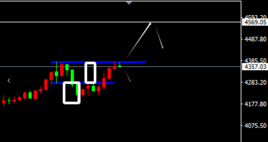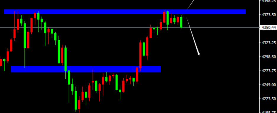 4小时:前高是4379 这个位置短期还是一个箱体水平位 白天只要不是一次性破 站稳 都会有一次两次试探性冲高后回落需求,根据这个理论 ;