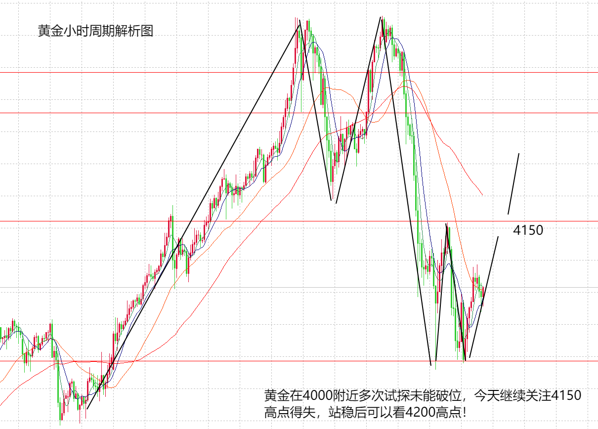 10-23[黄金]黄金4000强势支撑,多空反复对垒选择方向!