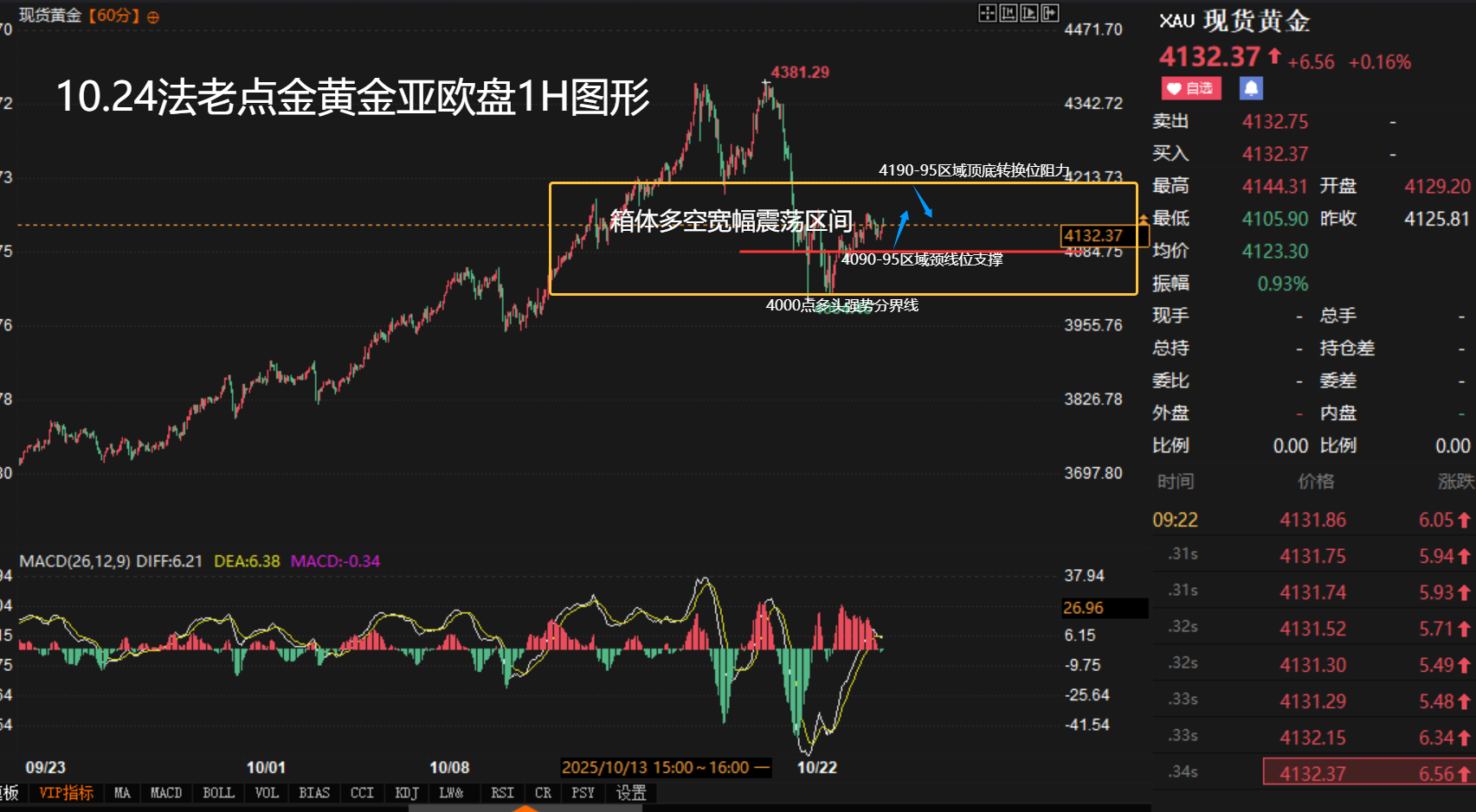 10-23[黄金]黄金4000强势支撑,多空反复对垒选择方向!