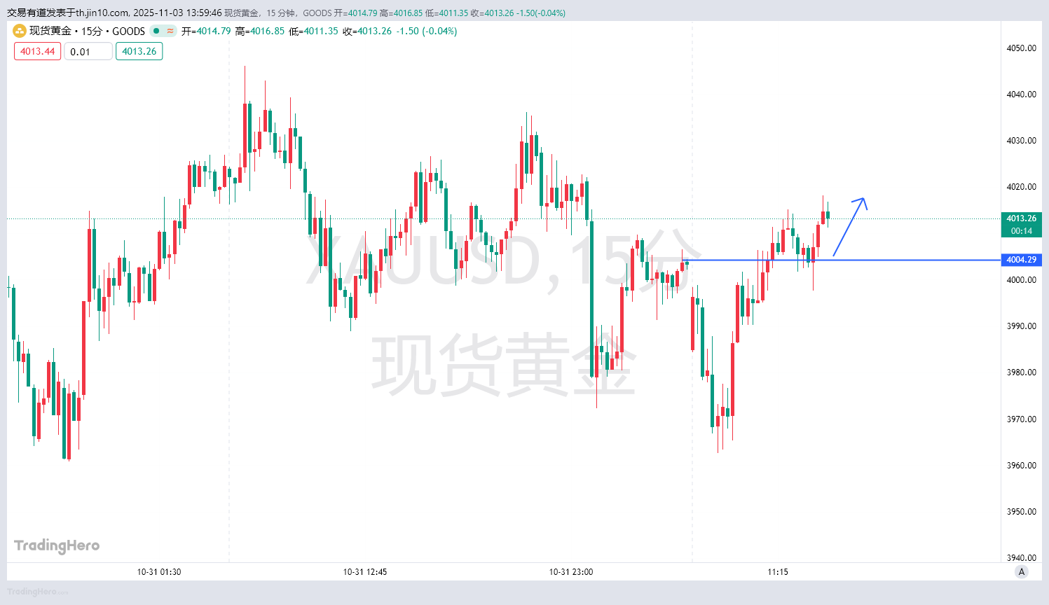 11-03[黄金]11月3日【黄金原油】亚欧盘:黄金上周五3999多4030扫止盈,日线级别震荡小阴不改整体强势震荡格局,今日回踩依托3940关口继续主多再看反弹回升