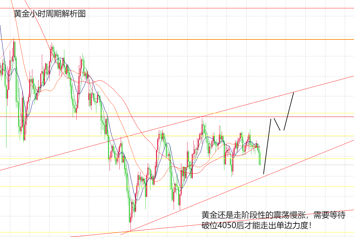 周一黄金先跌后涨,震荡区间在3960/4030,其力度很大,走势也比较明确。在坚持低多看涨的走势中,山海给出了3985多,3998多单均看到了4020目标点,并且提示大家不要过分看上涨力度,在4050没有破位站稳之前,就以震荡慢涨行情看待即可。走到现在,大家也可以自己总结归纳一下,目前的行情就是一个震荡慢涨等待突破的走势。当然,这种走势不会维持多久,周三,周四,周五数据来临后既有可能会破位走出单边行情。那么,周二行情的看法也比较简单,既然周一高低点位不破,那么,周二就维持此区间的高低点做有效的高空低多即可,还是建议在震荡行情中做短线积累。从技术面来看,日线受压在4050之下,一直未能破位布林中轨压制,所以暂时还没有形成强势,而下轨布林没有开口,也就是说现在处于一个震荡弱势状态,需要日线连阳后破位布林中轨才能出现日线的强势状态,H4周期就是标准的区间表现,布林收口,均线粘合,今天最大的区间在4050/3950,但基于周一的回落空间不足,形成了下方趋势支撑,所以下方支撑可能会抬高,预计下方先看3965附近,建议以3965为防守做多看涨,上方逐步看到4020,4050即可。