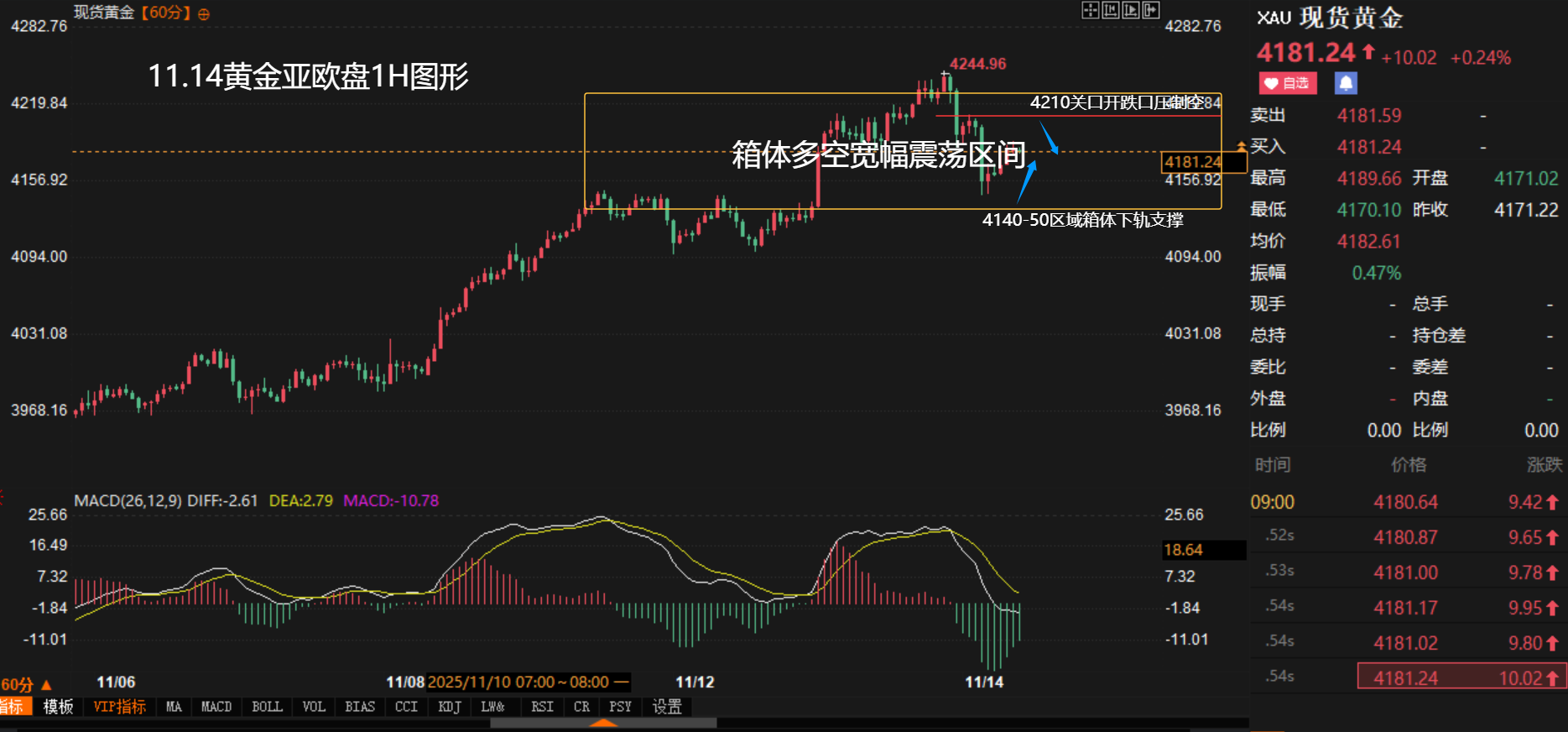 11-14[黄金]11.14—:美政府结束停摆!黄金伺机修正再震荡!