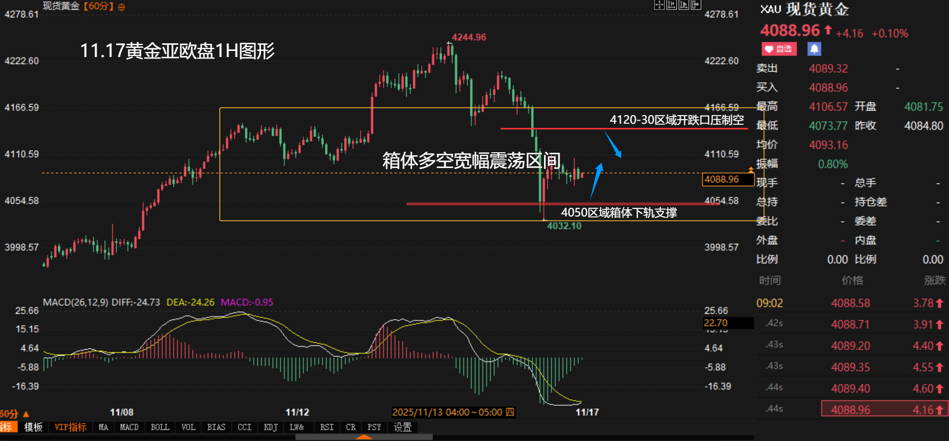 11-17[黄金]11.17—黄金4H修正!日K再回震荡向下!