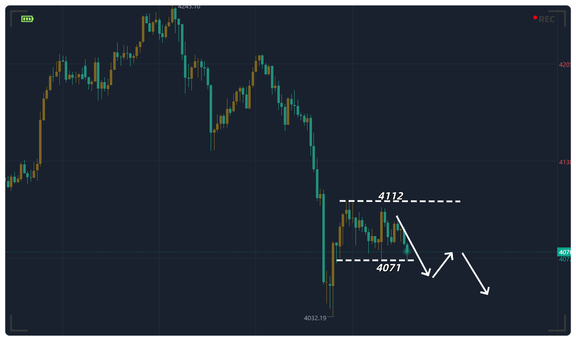 短线走势我们需要重点关注4112-4071区间,其中4112为多空分界点,4071则是关键支撑位。若4071被有效击穿,下行趋势才可能延续并打开新空间;在此之前,建议以震荡看空思路为主,避免过于激进做空,4112之下高空参与,等待4071破确认。