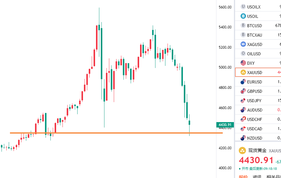 中东局势持续紧张,只是逐步发生一些微妙的变化,伊朗允许日本油船从霍尔木兹海峡通过,也仅仅允许日本通行,特朗普继续给伊朗上压力,称不解封霍尔木兹海峡将会对伊朗油气设施进行毁灭性打击,另外也有意解禁伊朗被限制的原油,然后伊拉克油田已经退出市场,阶段性被打击后丧失供应能力,直接推动原油走高,然后全球通胀预期继续升温,美联储高利率预期再度被强化,黄金的生存空间继续被压缩,阶段性依旧还是被市场所抛弃,去杠杆的路上总会有人受伤,继上周五反抽4736附近两次没能突破之后在晚间继续选择向下调整,引发情绪共振跑盘,早盘小幅反抽在4536附近之后加速杀跌,一度跌破4400大关最低目前触及4319一线企稳反抽,收复大部分跌幅,我们今天也不说抄底了,但是低位就是一直提示在做多,早盘路演的多已经收获满满,日内回踩就是继续做多,先看4500这个关口站稳情况,行情都不会一蹴而就,需要循序渐进,这样才会持续,一切等待市场验证!