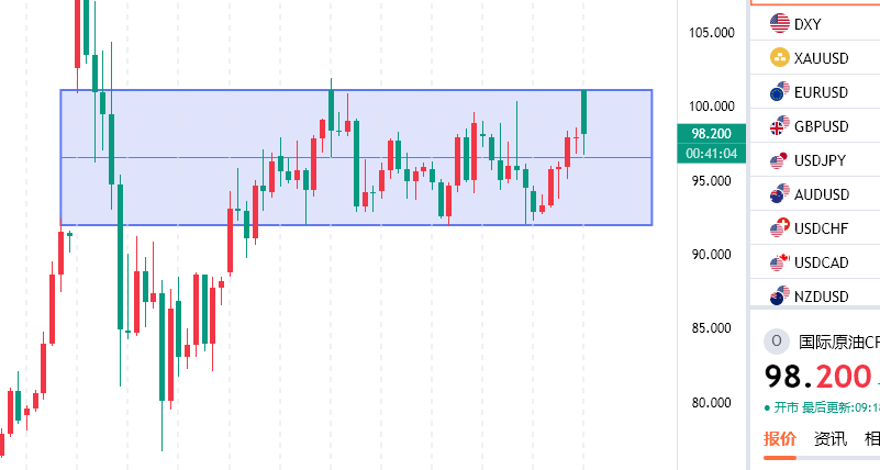 原油方面,虽然短期在中东局势持续紧张以及不断变化的氛围中依旧是利好偏多,但是美有意限制油价,方式方法也有很多,市场对此也是谨慎对待,所以造就原油虽然反复有拉伸走高,但是延续性都有限,上周五回踩最低92.4附近企稳反抽,今天早盘高开101附近再度回落,整体一个宽幅整理的格局是没有变化,上周分享的一些多空机会都是收获满满,短期的话继续保持区间高抛低吸的节奏就好,下方依托91/92支撑多,上方以101/102压力空!